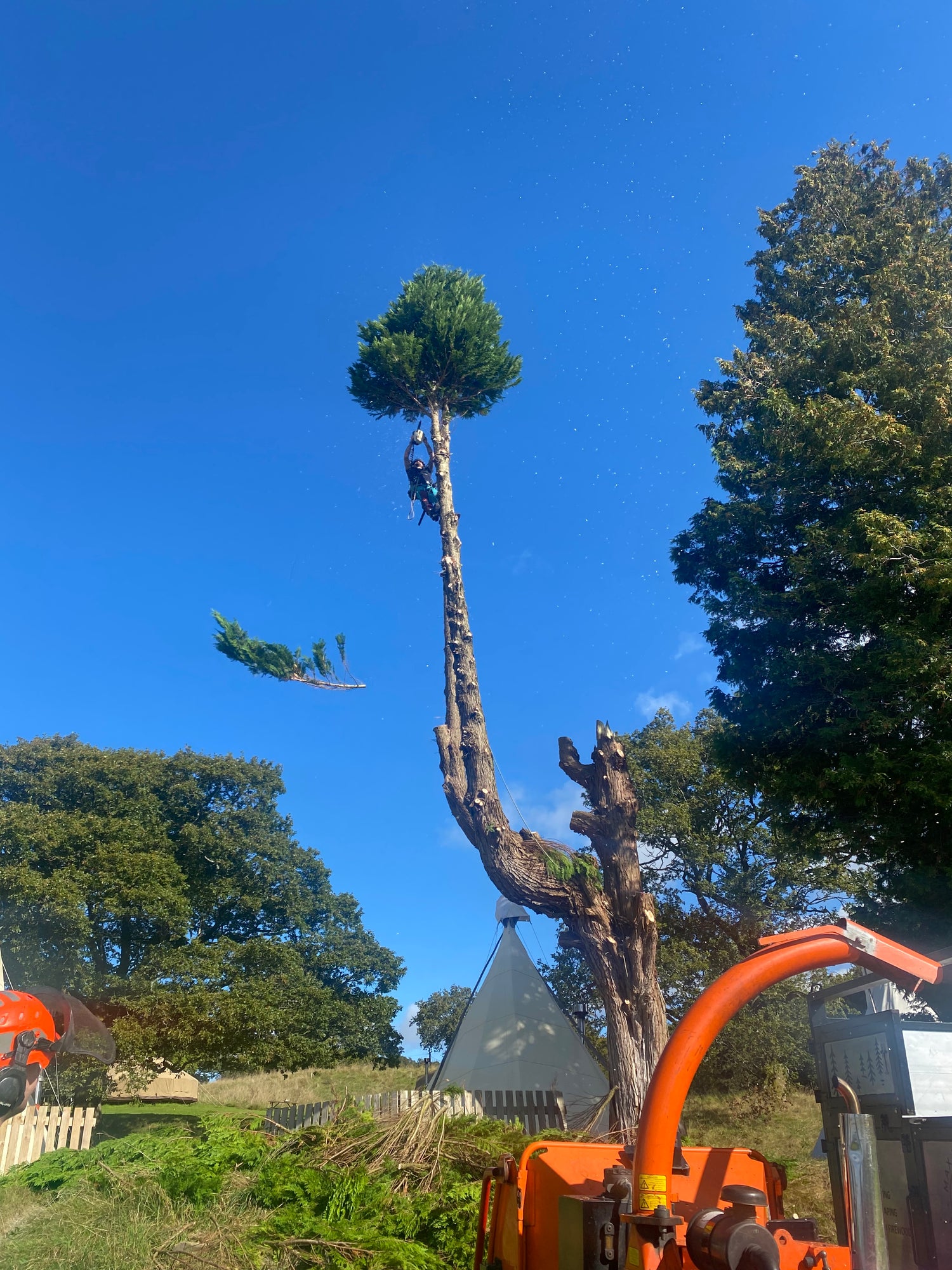 We carry out treeremoval most commonly when the trees health is in question or is visibly showing decay, disease, or internal structural problems. We take removals very seriously and will always discuss other possibilities before the final decision is made to take the tree down. Our team is very experienced and use the most up to date methods and techniques via rope systems thus avoiding any risk to property. Trees in close proximity to buildings, over telephone wires, in car parks and